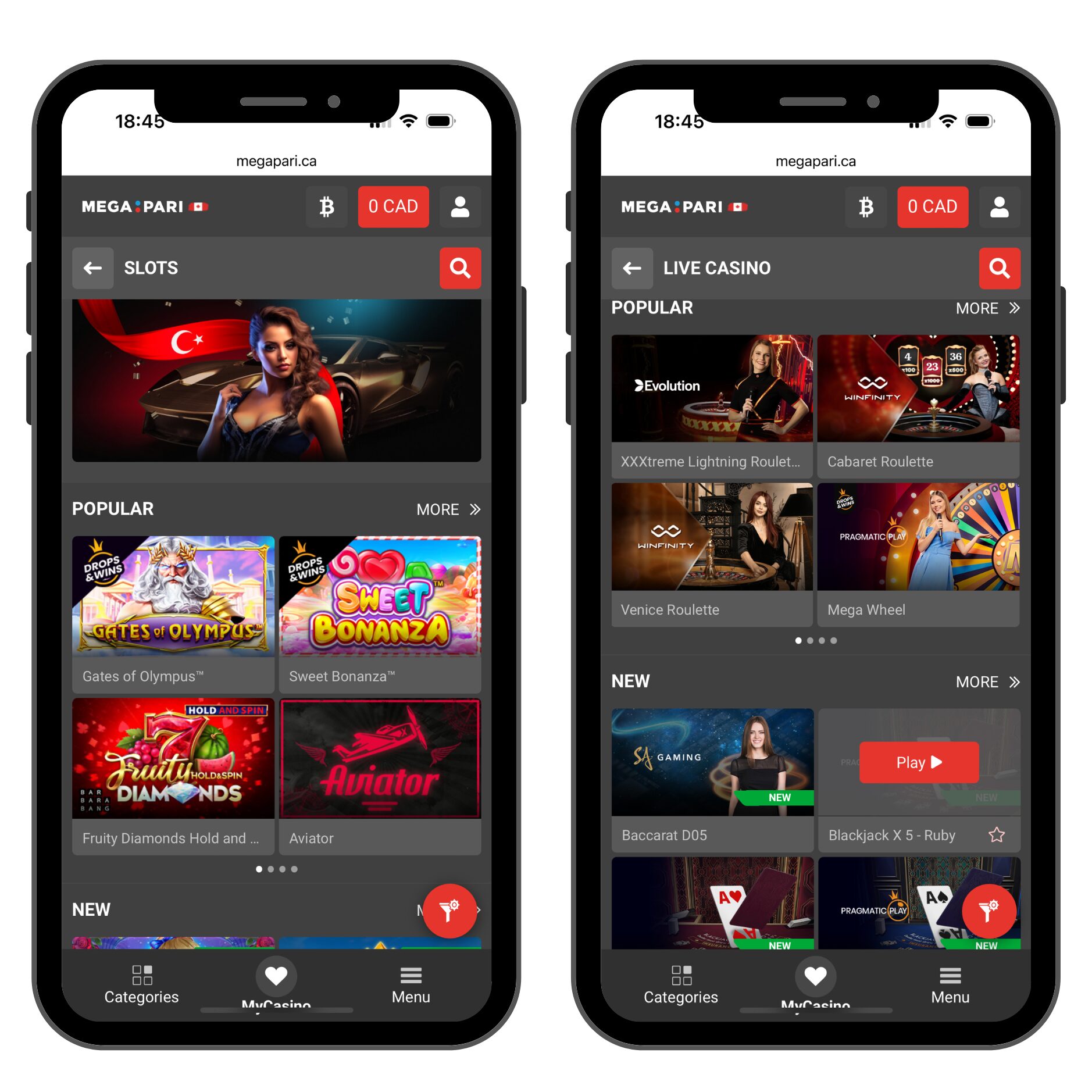 We reviewed the Megapari Casino app on the iPhone 14 Pro and on a Samsung tablet. Both the iOS and Android versions of the app can be downloaded from the footer of the website.