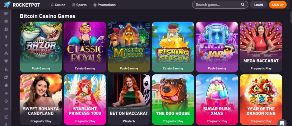 Rocketpot casino has a large game selection. You can play slots as well as classic table and card games. The casino also has a live casino and a sports betting section.